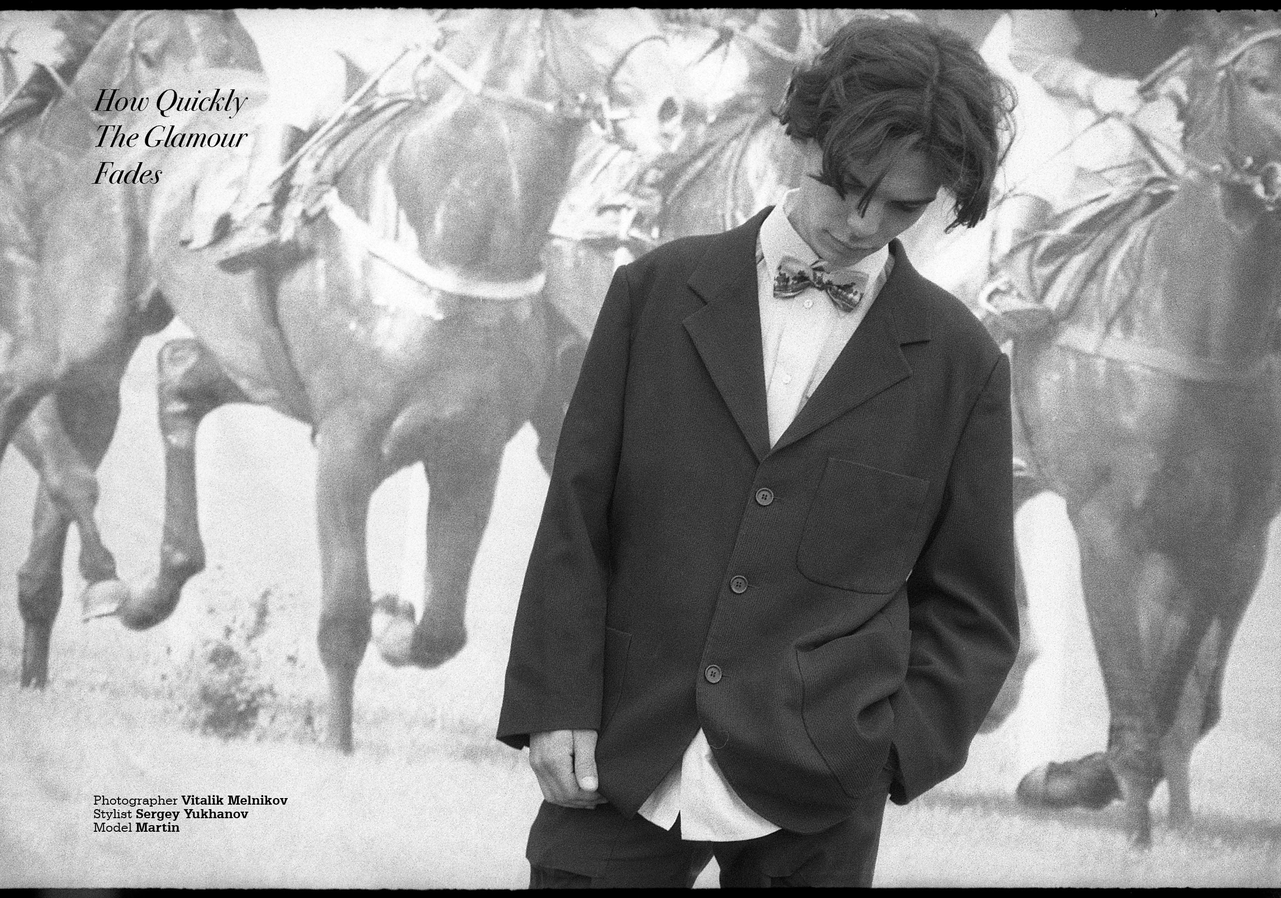 How Quickly The Glamour Fades features model Martin by Vitalik Melnikov in an exclusive analogue editorial for CLIENT Online, styled by Sergey Yukhanov
