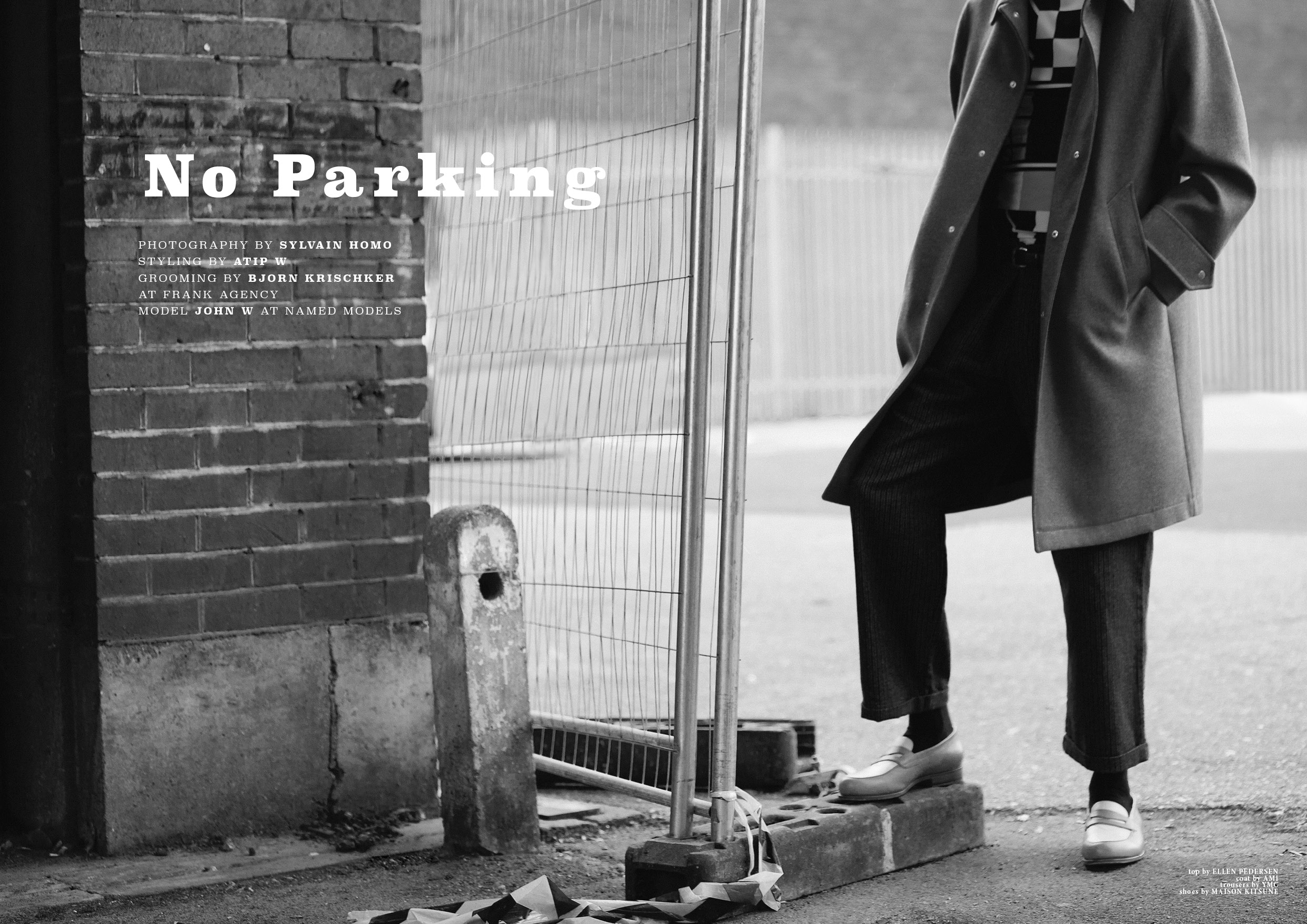 No Parking features John W at Named Models photographed by Sylvain Homo from our current issue Client Magazine #16, styled by Atip W. Fashion includes Maison Kitsune, YMC, AMI, Ellen Pedersen, Our Legacy, Qasimi, Marni, CMMN SWDN, Neil Barrett, Berthold and WoodWood . Softback, casebound hardbac