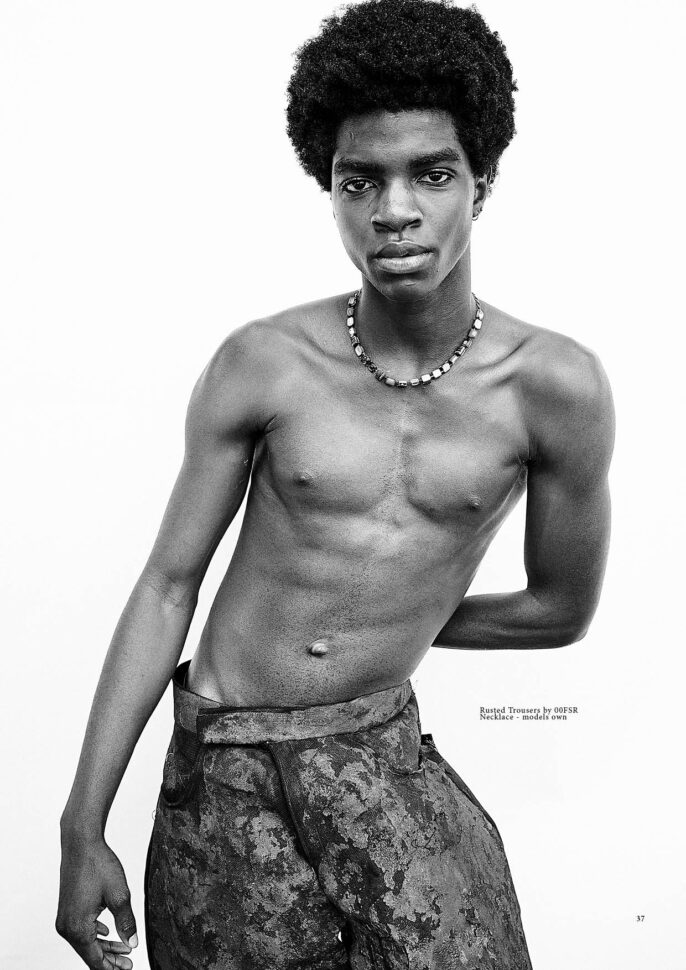 Front Cover: Photography by Eduardo Miera, Styling by Maria Falé, Set Design by Rocio Ley, Groomer: Ricardo Calero, Photo Assistant: Olivier Peresse, Styling Assistant: Sara García, Model: Andrew Barabash at Elite Barcelona. Special thanks to Rafa Gallar.